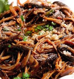 - 则将切成小段的凤鳝,先下油锅炸成金黄色。
