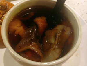 去福州旅游,除了见识各种各样的风景外,吃也是重要的组成部分,来到福州,当然要品尝下闽菜了,福州菜和上海菜很像,甜甜的。吃过之后,果然如此啊!怪不得在福州碰到好多上海游客,闽菜应该很对上海人的口味。这顿饭菜,除了佛跳墙和鱼丸,其他菜和点心几乎都可总结为两个字——甜腻。吃得我甜腻的感觉,看来我不太适合吃闽菜,我适合吃川菜,哈哈!这是佛跳墙,口下去,唇齿间充盈着胶原蛋白。